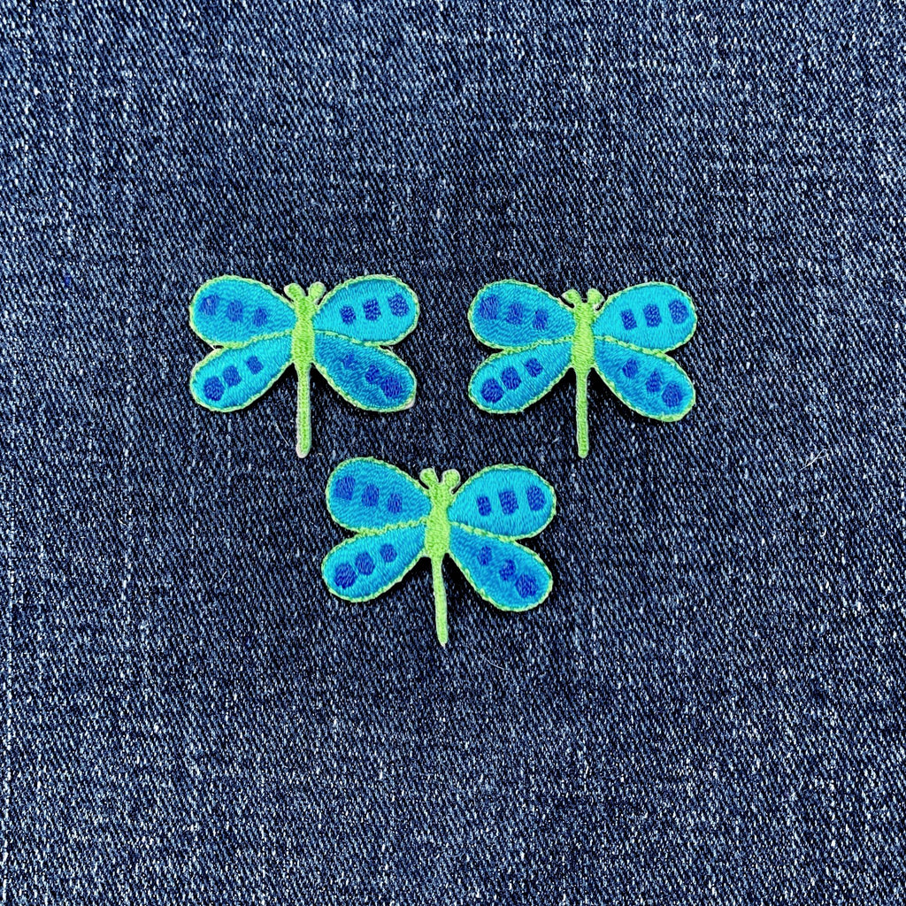 3-Pack Dragonfly Applique Patch - Embroidered Insect Badge 1.25" (Iron On)