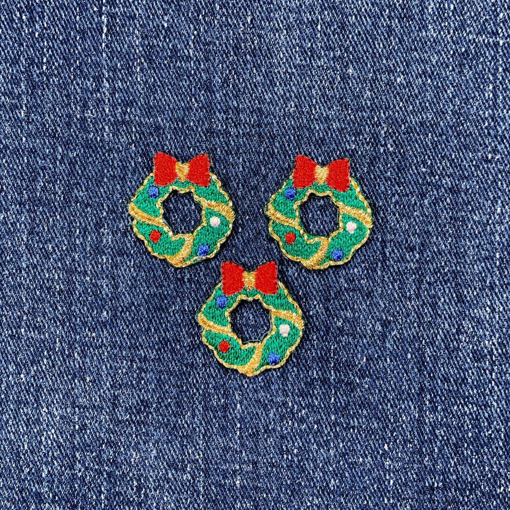 3-Pack Christmas Wreath Applique Patch - Mini Embroidered Holiday Badge 7/8" (Iron On)