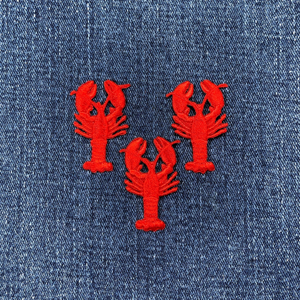 3-Pack Crawfish Lobster Applique Patch - Embroidered Seafood Badge 1.5" (Iron On)