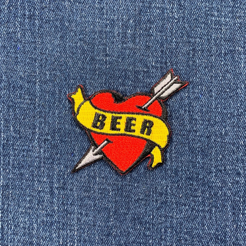 Beer Patch - Embroidered Heart Tattoo Style Badge 2.25" (Iron On)