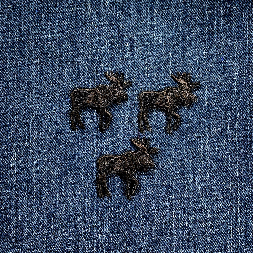 3-Pack Black Moose Applique Patch - Mini Embroidered Animal Badge 1.25" (Iron On)