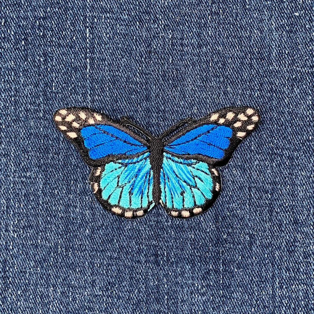 Blue Butterfly Applique Patch - Embroidered Insect Badge 2-7/8" (Iron On)