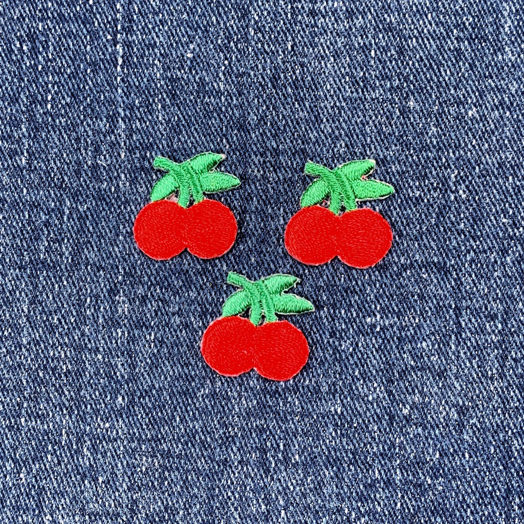 3-Pack Cherries Applique Patch - Mini Embroidered Cherry Badges 3/4" (Iron On)