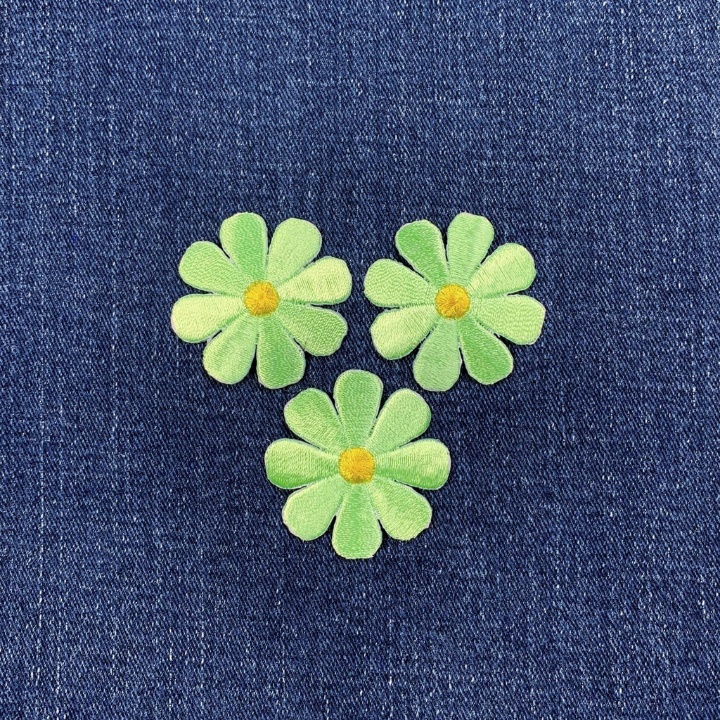 3-Pack Daisy Applique Patch - Embroidered Light Green & Yellow Flower Badge 1.5" (Iron On)