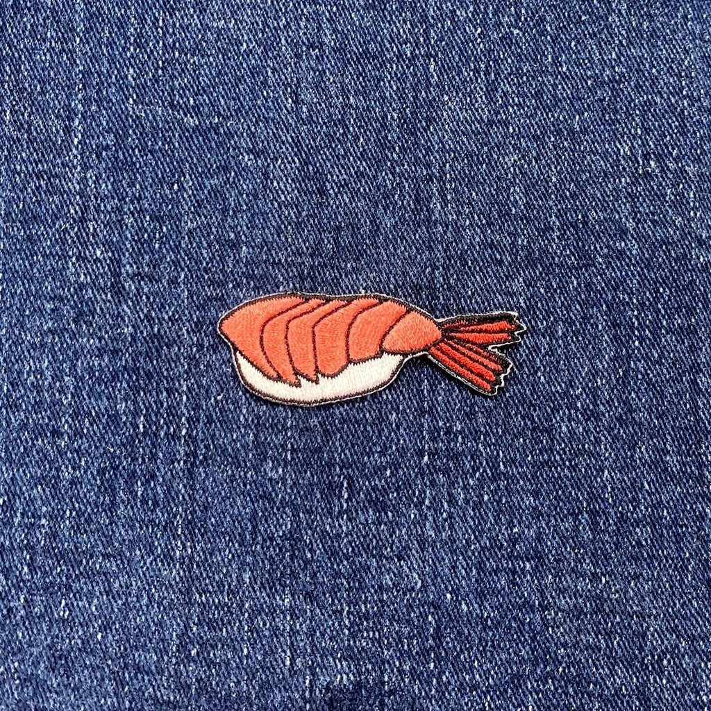 Sushi Applique Patch - Embroidered Ebi Nigiri Shrimp Badge 2" (Iron Or Sew On)