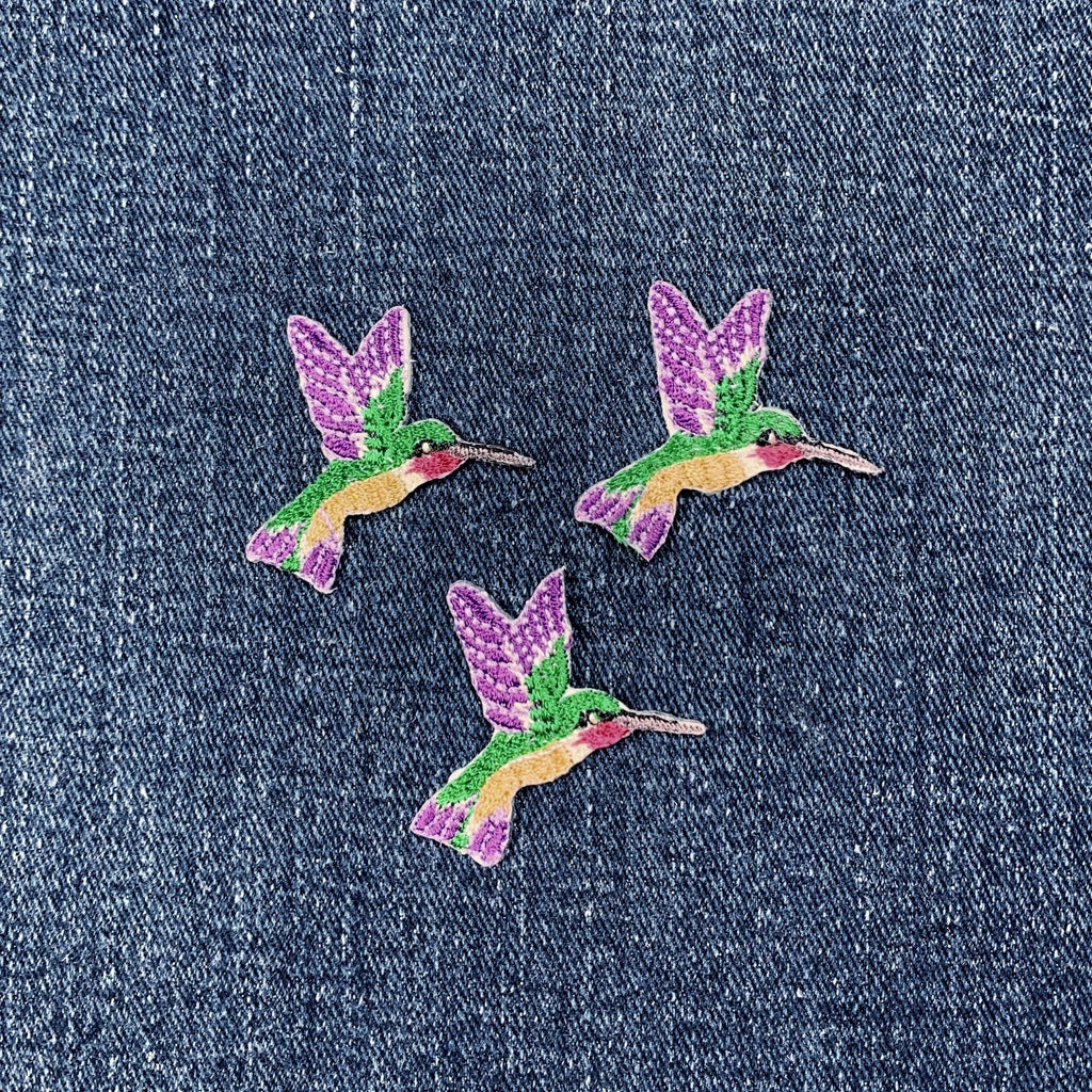 3-Pack Hummingbird Applique Patch - Mini Embroidered Bird Badge 1.25" (Iron On)