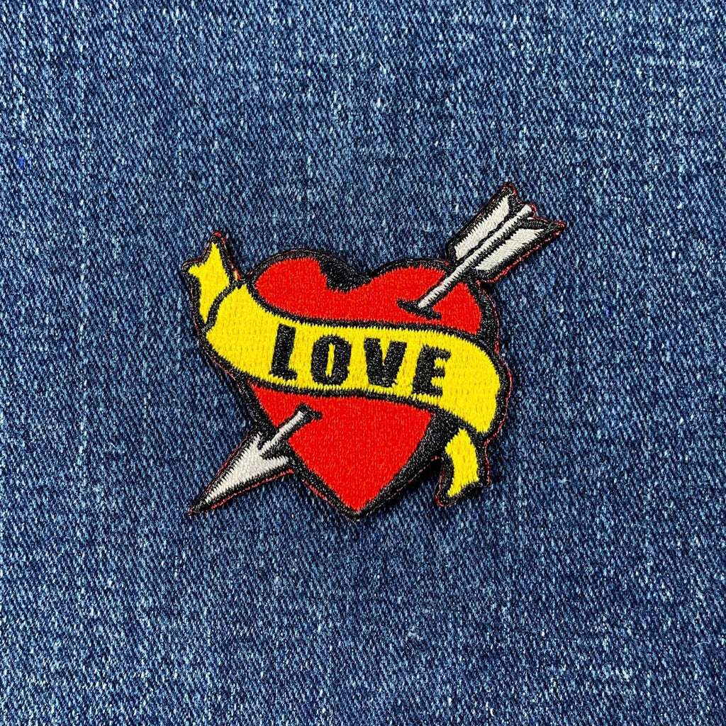 Love Patch - Embroidered Heart Tattoo Style Badge 2.25" (Iron On)