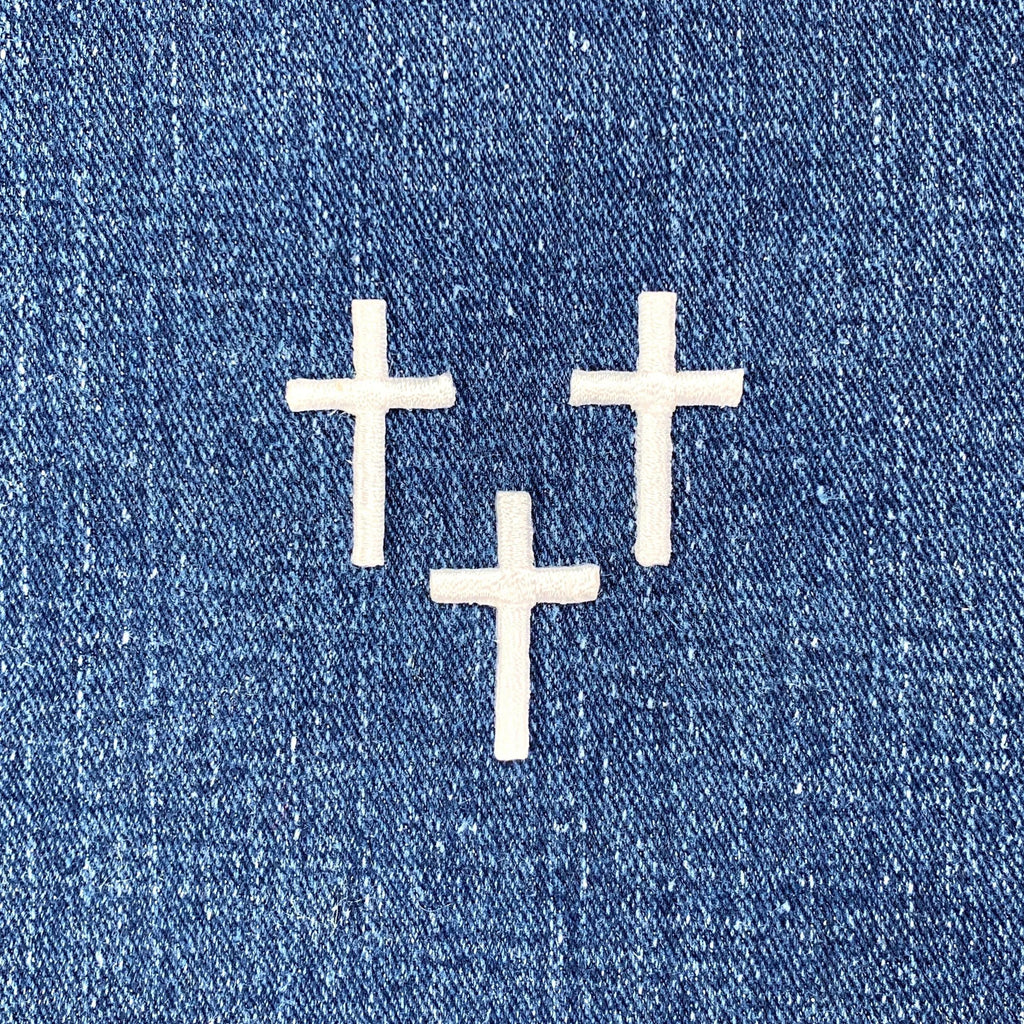 3-Pack Cross Applique Patch - White Christian Baptism First Communion Badge 1"