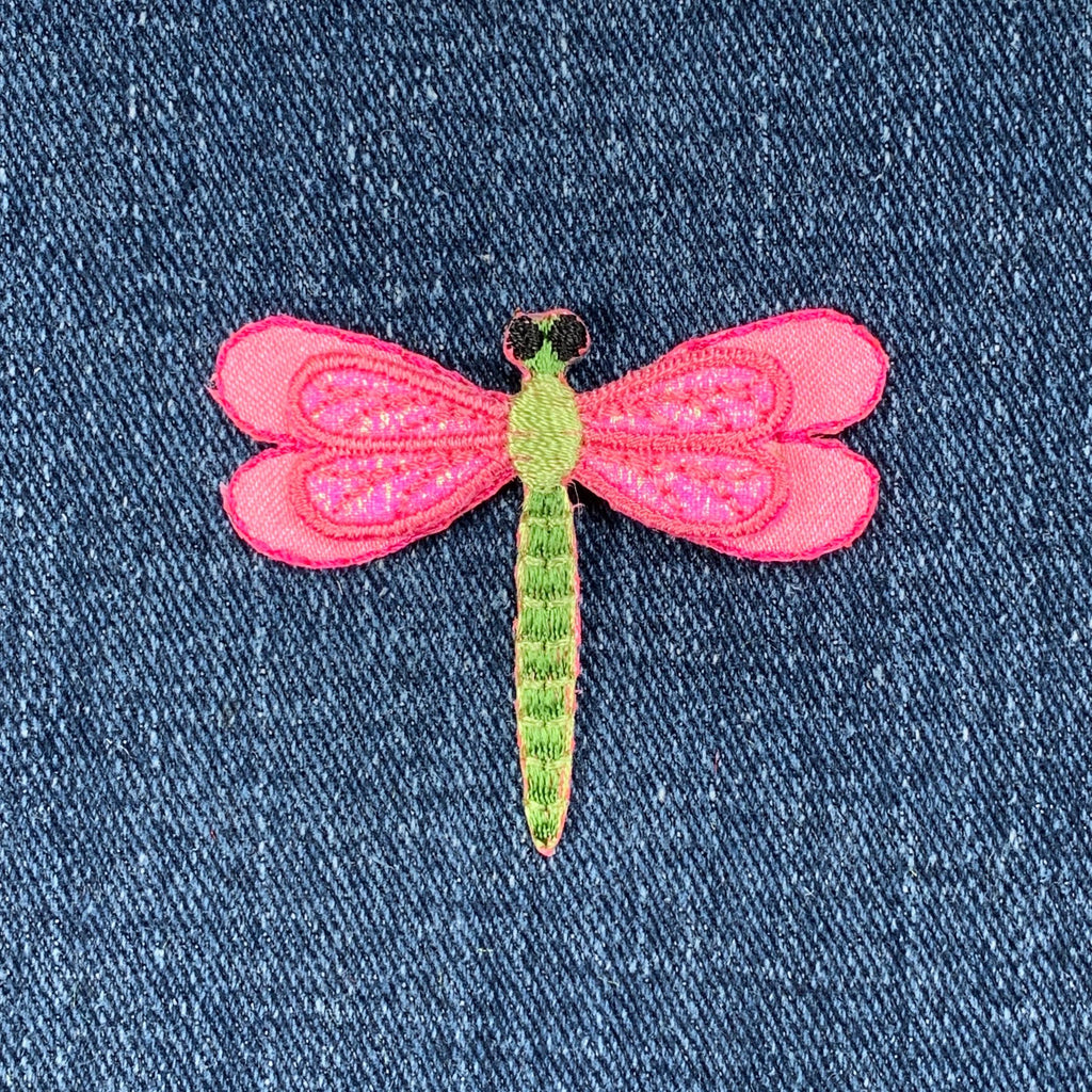 Pink Dragonfly Applique Patch - Shimmery Embroidered Layered Insect Badge 2" (Iron On)