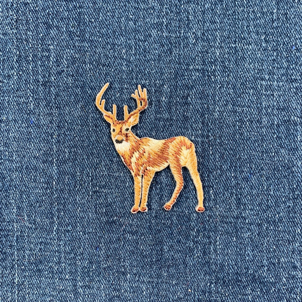 Deer Applique Patch - Small Embroidered Buck Animal Badge 2" (Iron On)