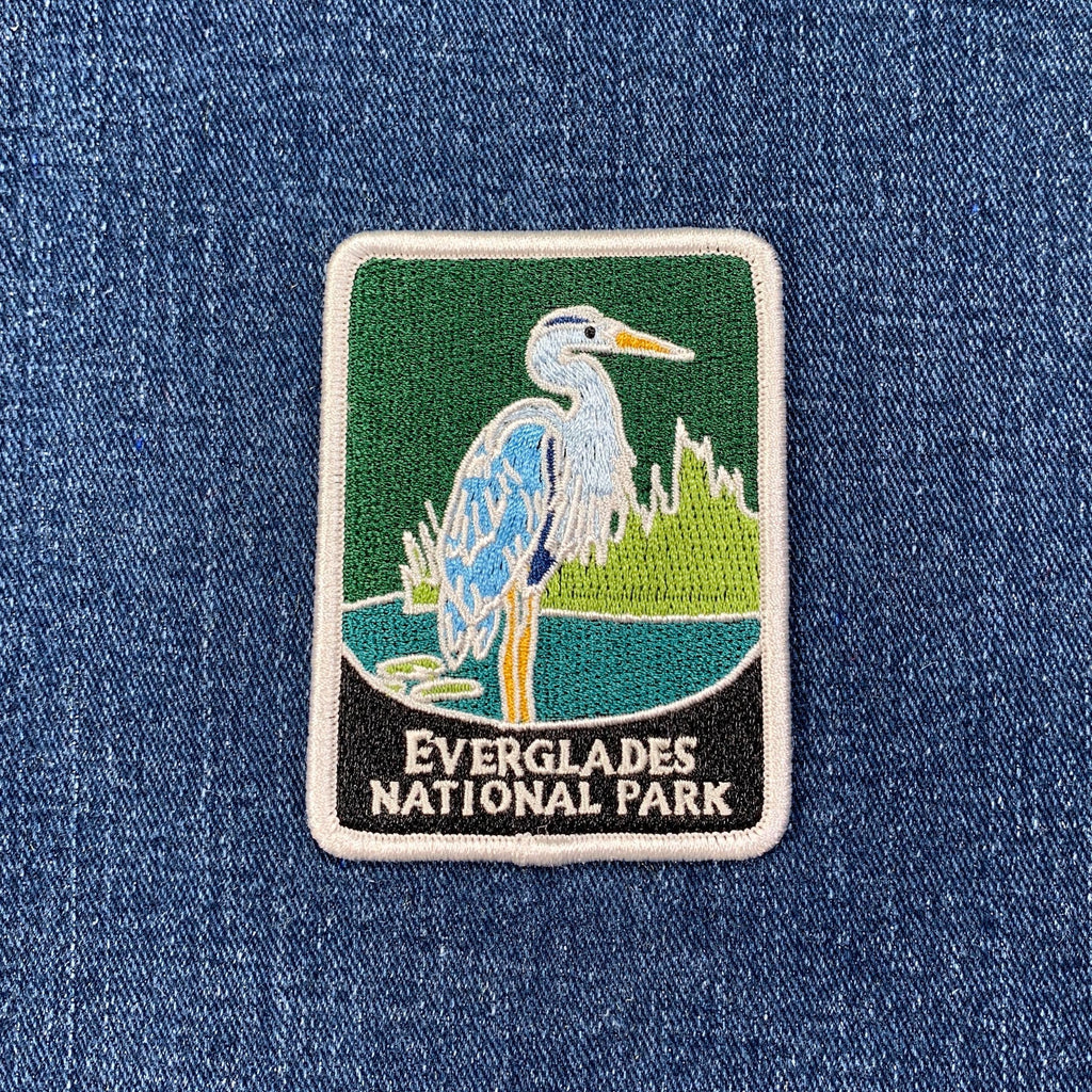 Everglades National Park Patch - Embroidered Egret & Wetlands Florida Badge 2-7/8" (Iron On)