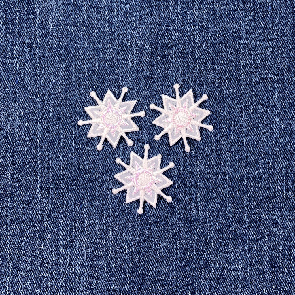 3-Pack White Snowflake Applique Patch - Mini Embroidered Iridescent Snow Badge 1" (Iron On)