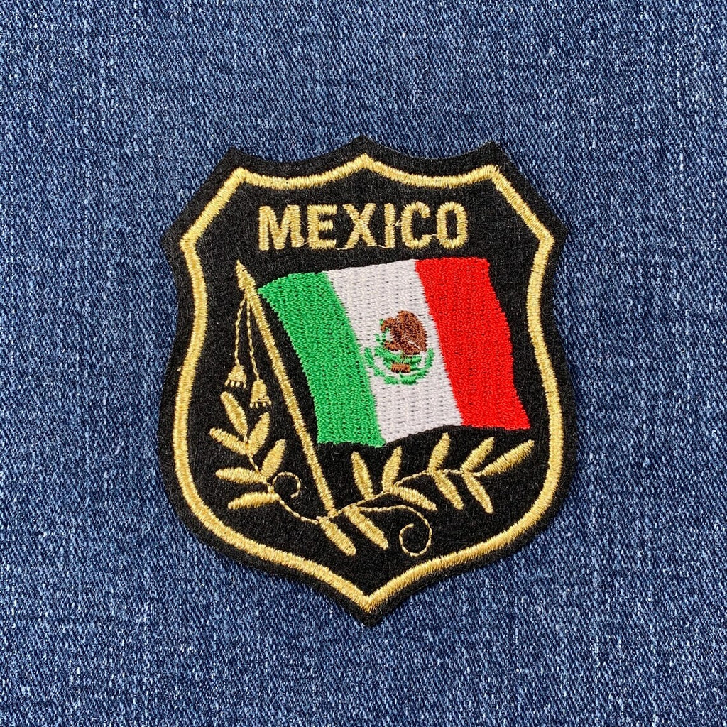 Mexico Patch - Mexican Flag Shield Embroidered Mylar México Badge 3.25" (Iron Or Sew On)2-13/16" wide x 3-1/4" tall