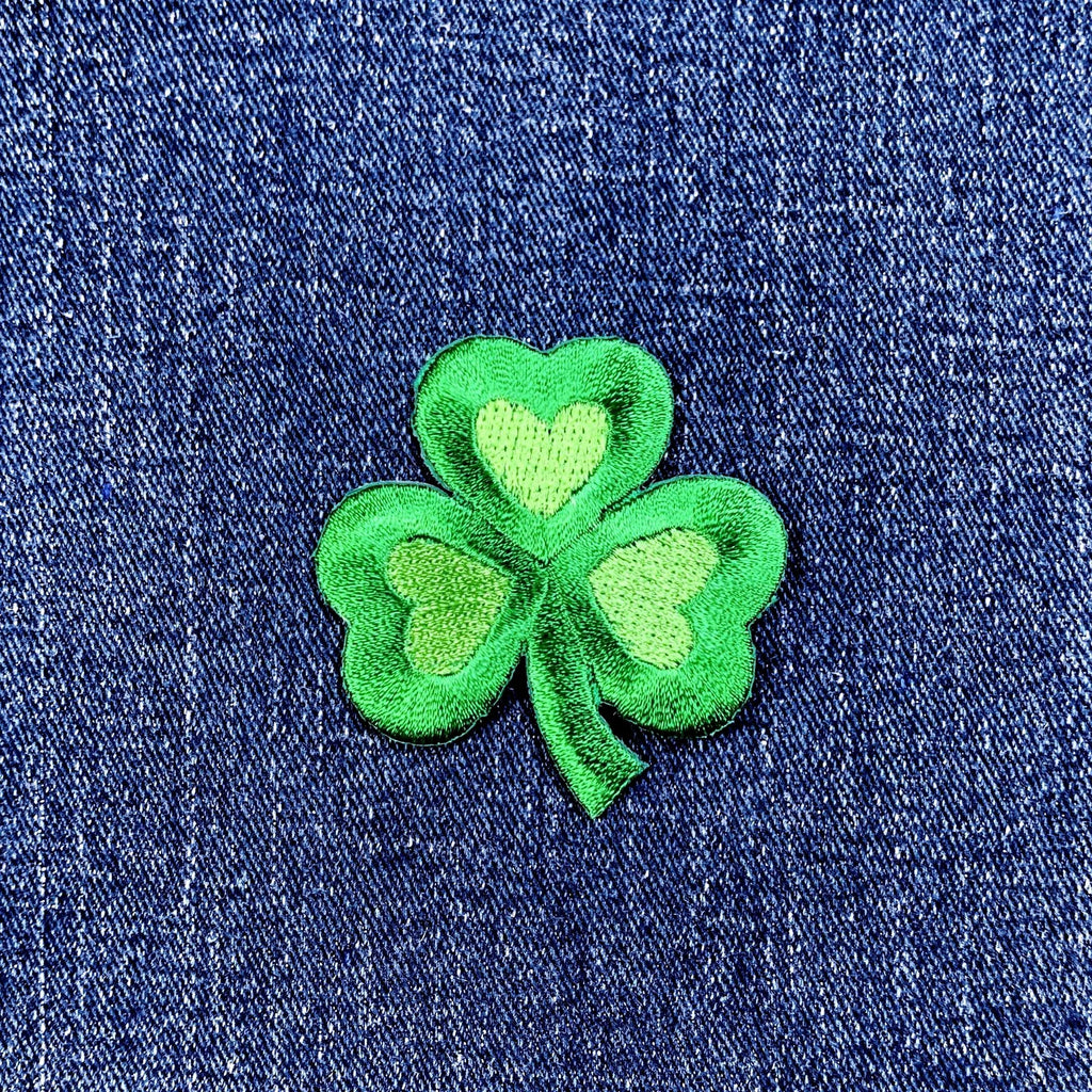 Shamrock Applique Patch - Embroidered Heart Clover Good Luck Badge 2" (Iron On)