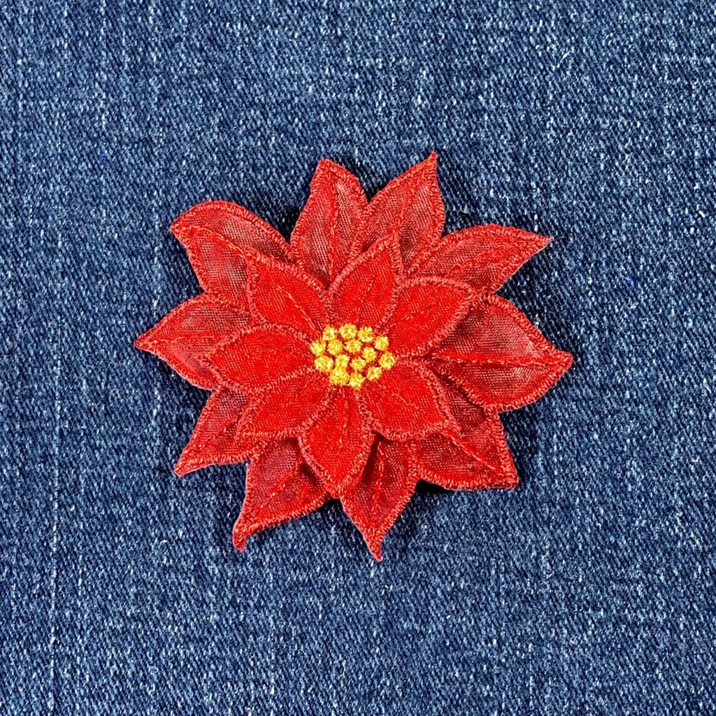 Poinsettia Applique Patch - Embroidered Layered Christmas Flower Badge 2-7/8" (Iron On)