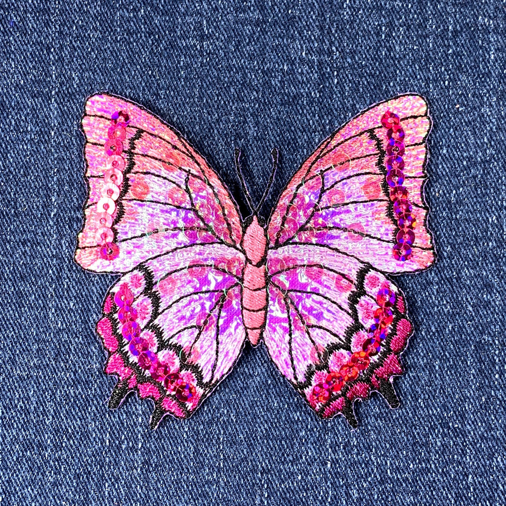 Butterfly Applique Patch - Sequin Embroidered Fuchsia Pink Insect Badge 3-1/8" (Iron On)