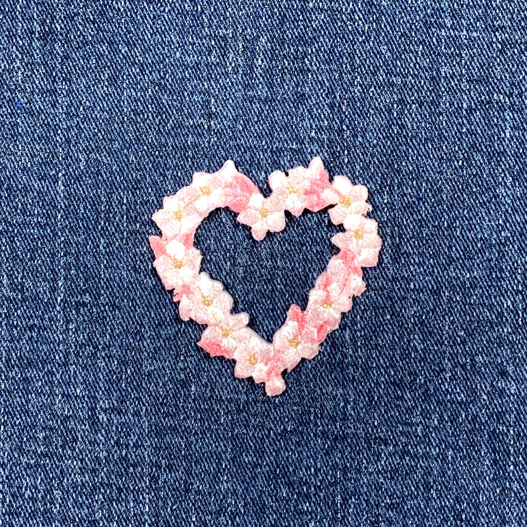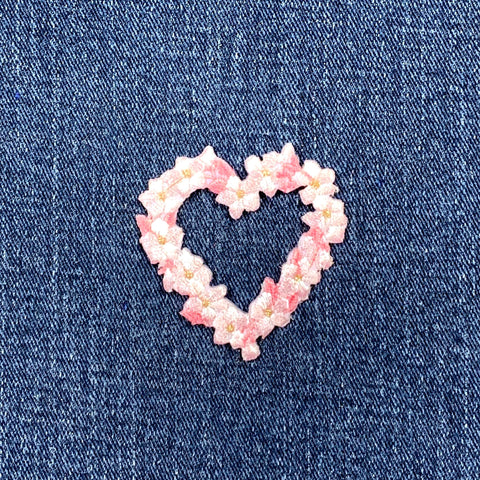 Flower Heart Applique Patch - Embroidered Pink Wreath Badge 1-7/8" (Iron On)