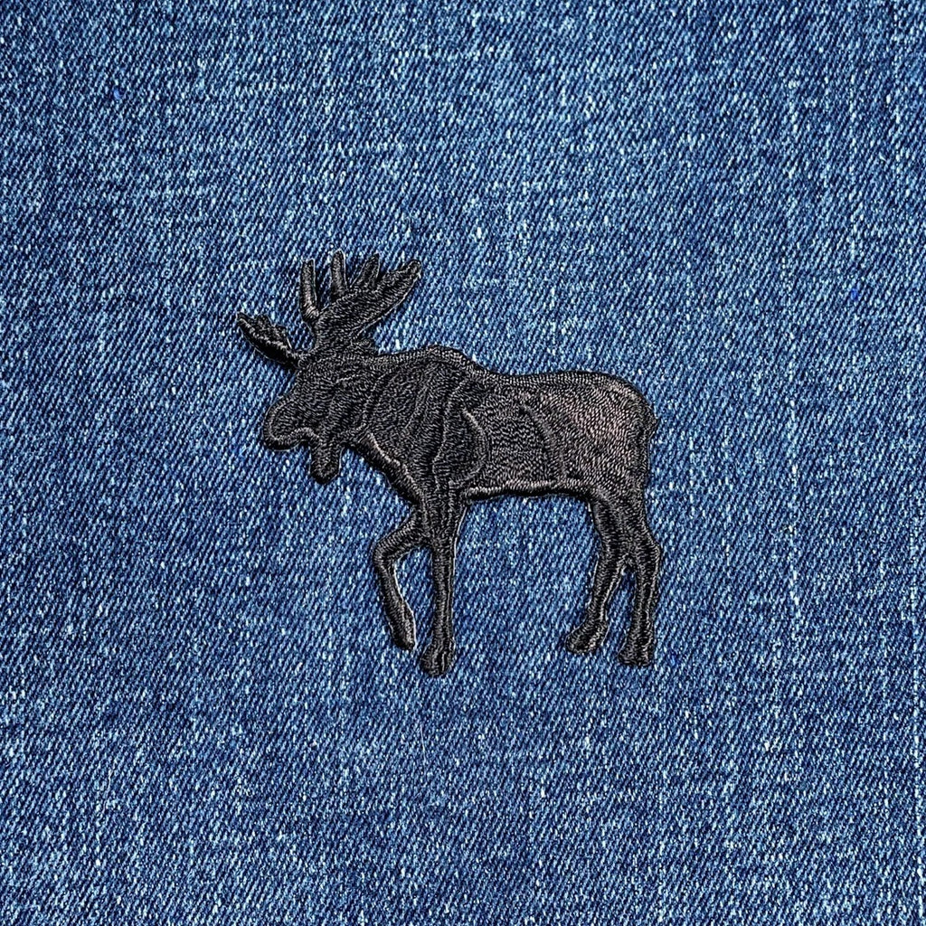 Moose Applique Patch - Facing Left Black Embroidered Animal Badge 2.25" (Iron on)