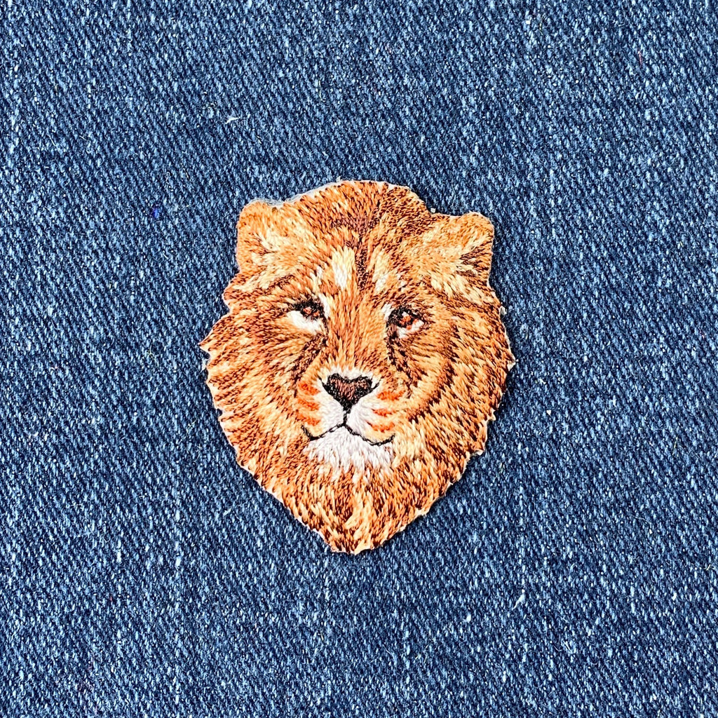 Lion Head Applique Patch - Embroidered Animal Badge 1.75" (Iron Or Sew On)
