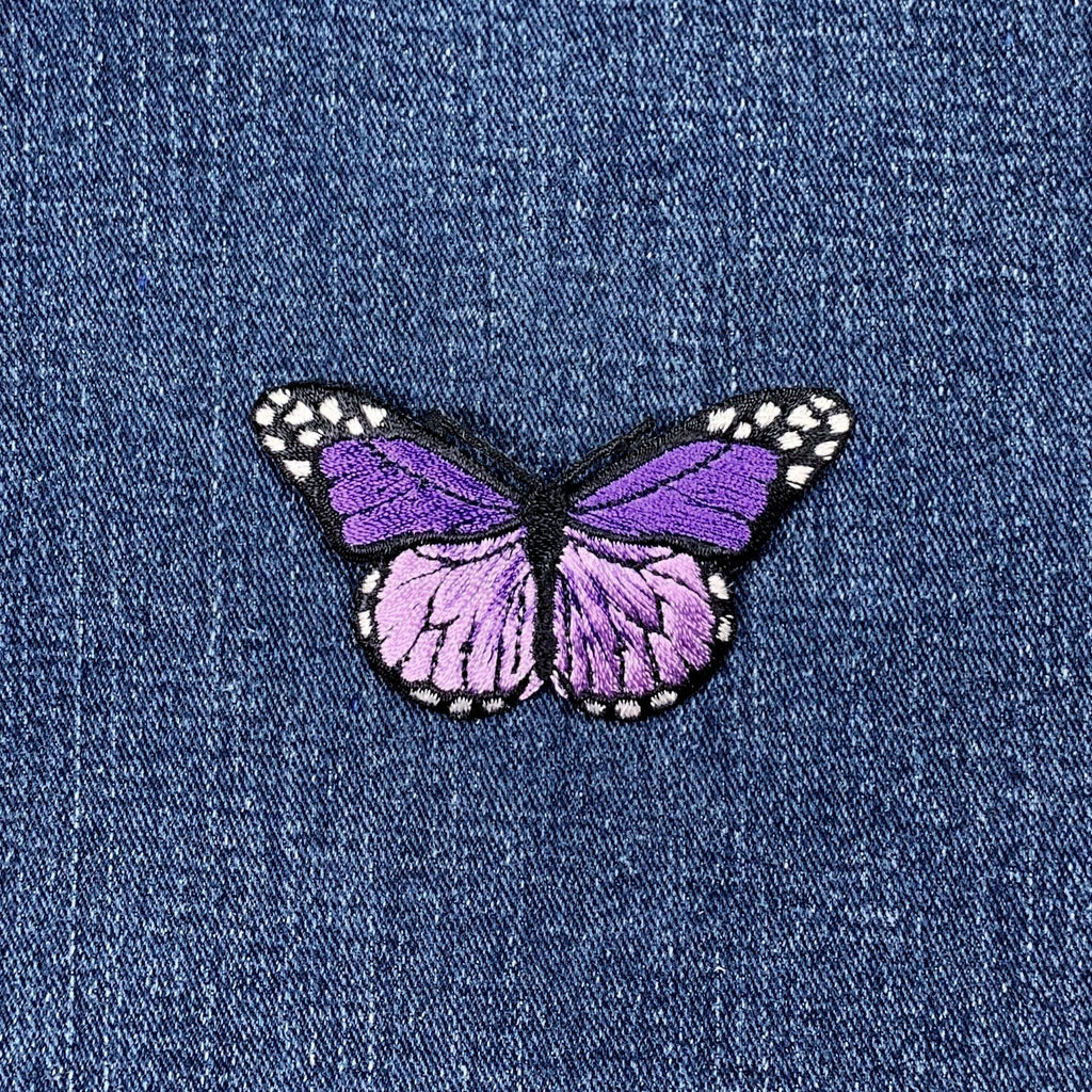 Purple Butterfly Applique Patch - Embroidered Insect Badge 2-7/8" (Iron On)