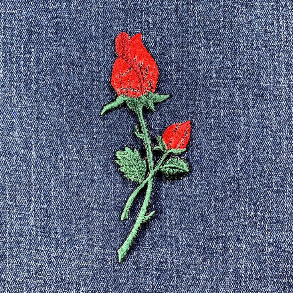 Rose Applique Patch - Embroidered Flower Garden Badge 4.25" (Iron On)