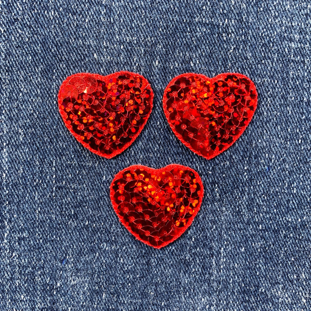 3-Pack Red Heart Applique Patch - Small Sequin Badges 1-1/16" (Iron On)