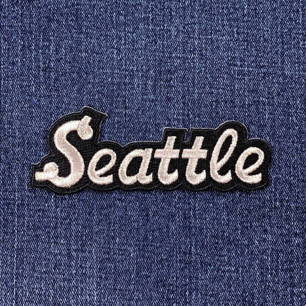 Seattle Patch - Embroidered Script Black & White Badge 4.25" (Iron Or Sew On)