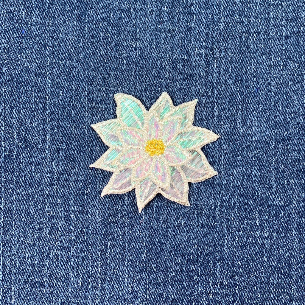 Poinsettia Applique Patch - Small Embroidered Layered Christmas Flower Badge 1.75" (Iron On)