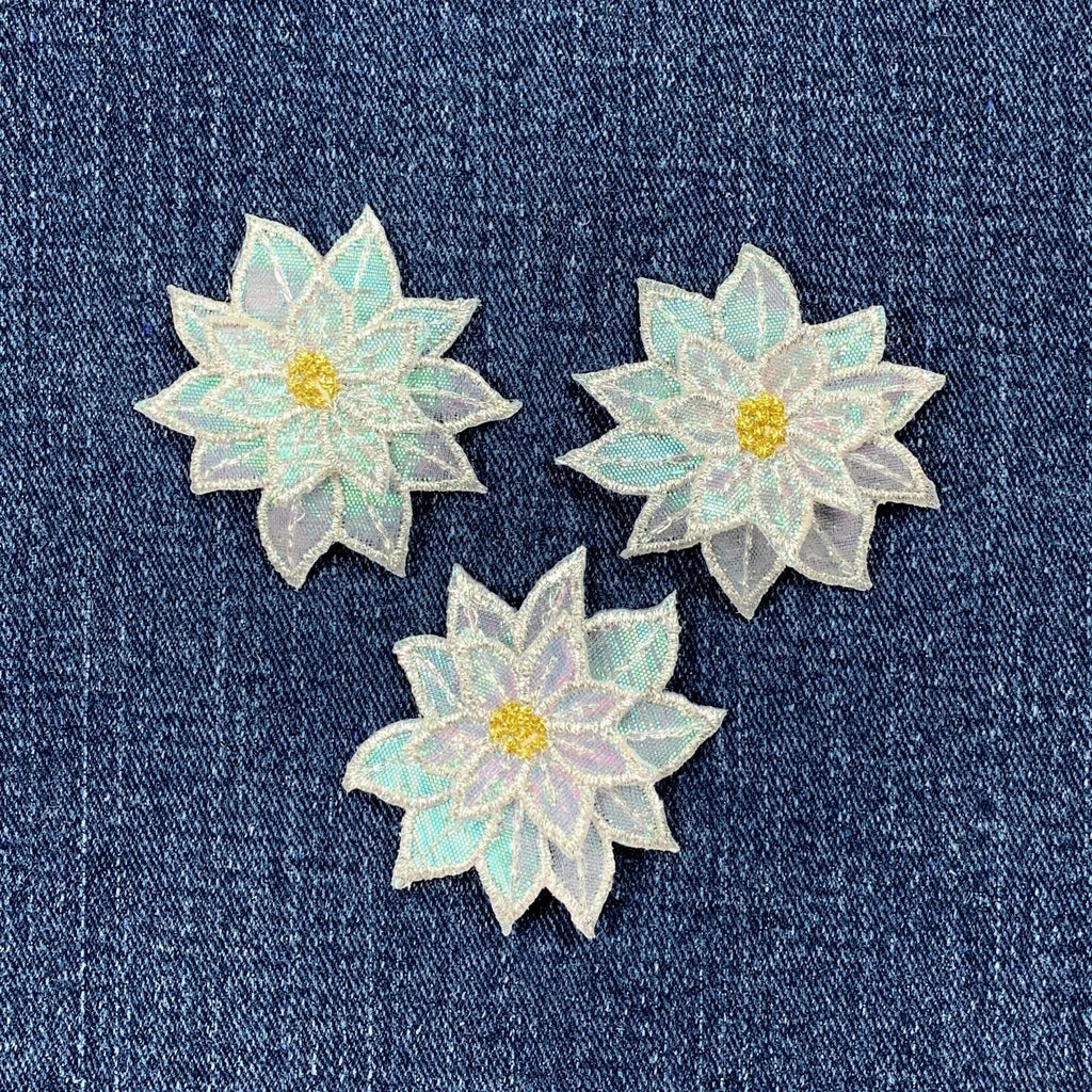 3-Pack Red Poinsettia Applique Patch - Embroidered Layered Christmas Flower Badge 1.75" (Iron On)