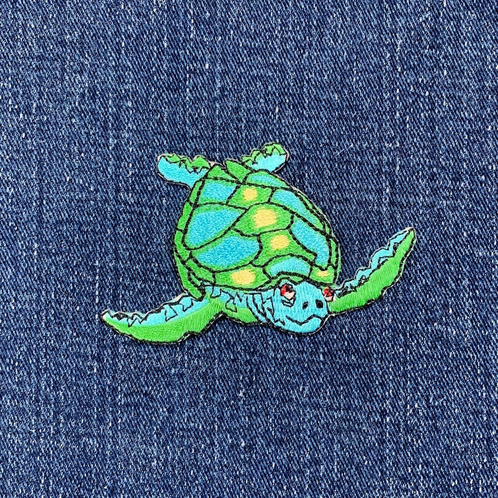 Sea Turtle Applique Patch - Embroidered Sea Creature Badge 2-5/8" (Iron On, Right)