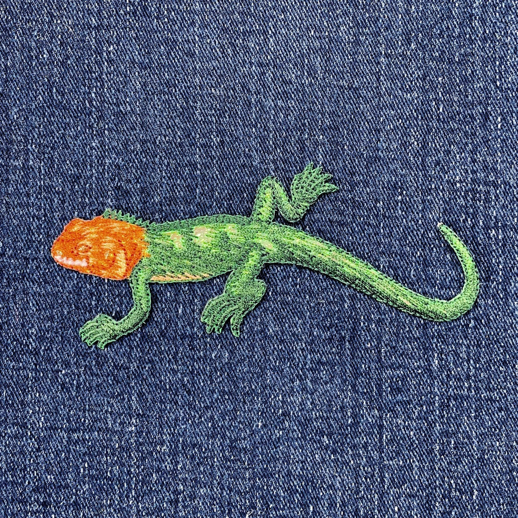 Shiny Lizard Applique Patch - Embroidered Reptile Badge 4" (Iron On)