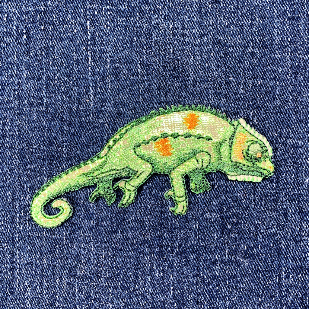 Shiny Chameleon Applique Patch - Embroidered Reptile Lizard Badge 3-3/8" (Iron On)