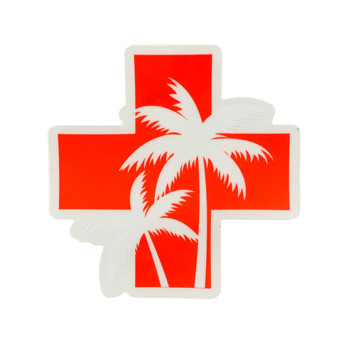Saltwater Apothecary Sticker - Vinyl Decal Palm Trees Lifeguard Cross Ocean Healing 3"