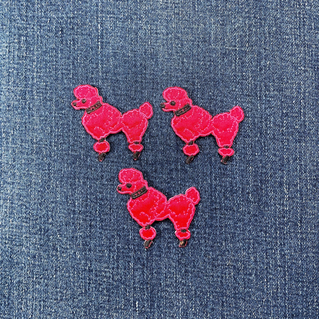 3-Pack Poodle Applique Patch - Embroidered Fuchsia Pink Dog Badge 1-7/8" (Clearance, Iron On)