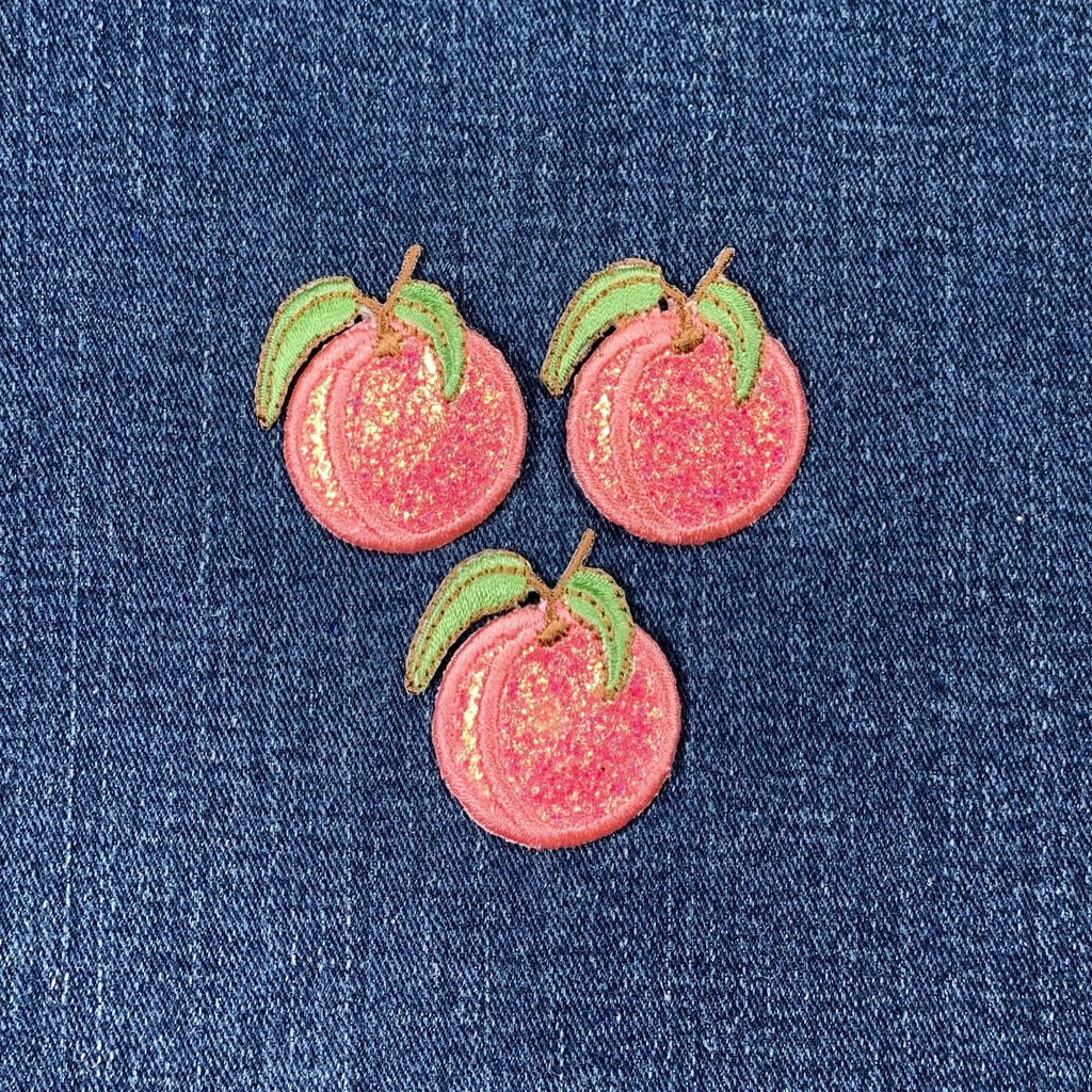 3-Pack Sparkly Peach Applique Patch - Embroidered Fruit Badge 1.5" (Iron On)
