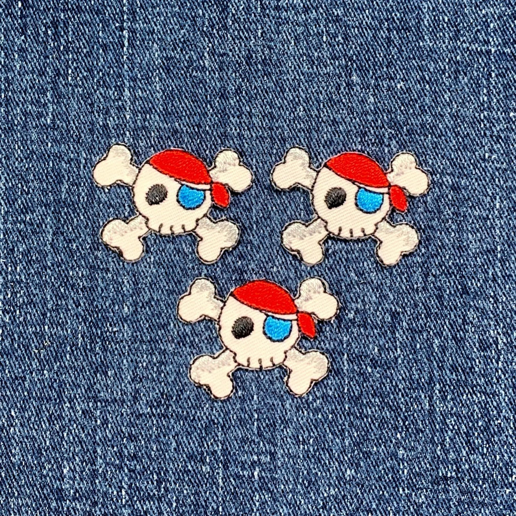 3-Pack Pirate Skull Applique Patch - Embroidered Halloween Badge 1-3/8" (Iron On)