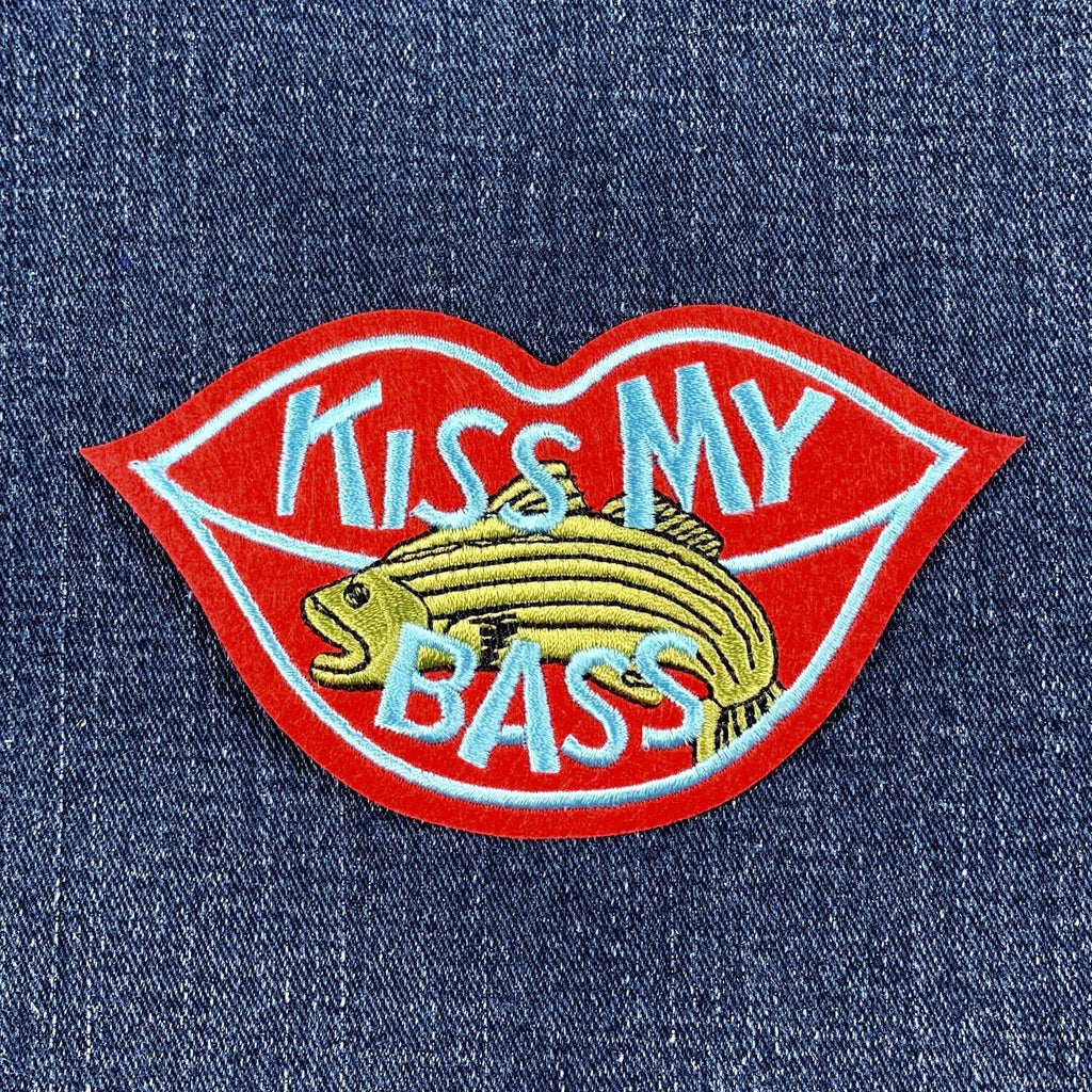 Kiss My Bass Patch - Embroidered Fishing & Red Lips Badge 4.5" (Iron On)