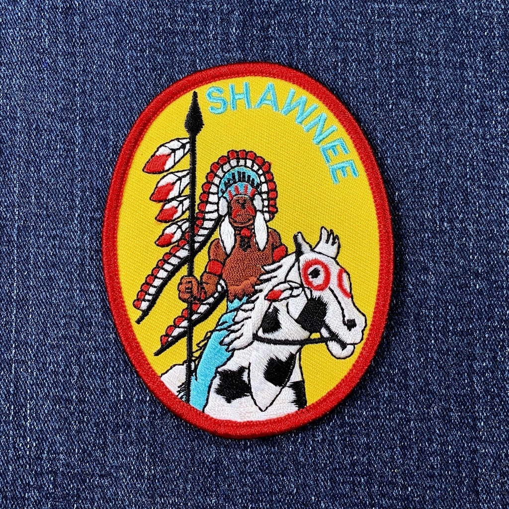 Shawnee Patch - Embroidered Native American Indian & Horse Badge 3-7/8" (Iron On)