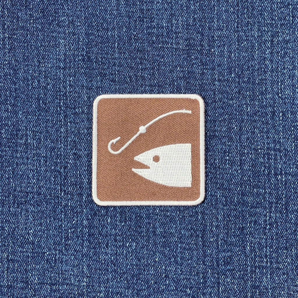 Fishing Patch - Embroidered Fish & Hook Sign Badge 2" (Iron On)
