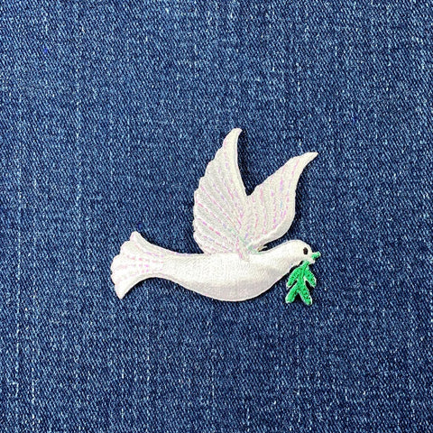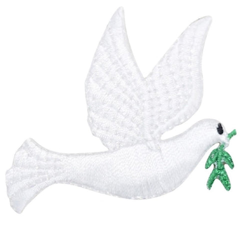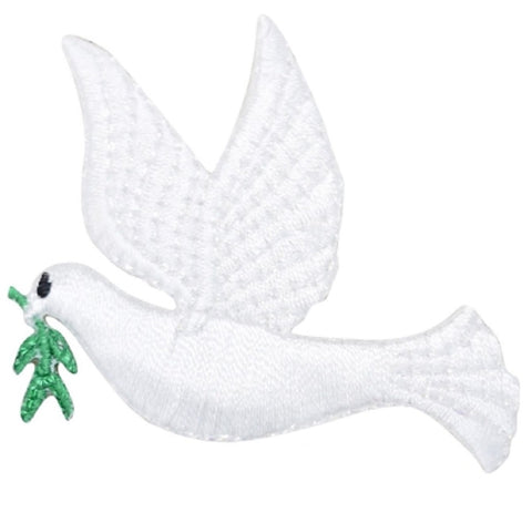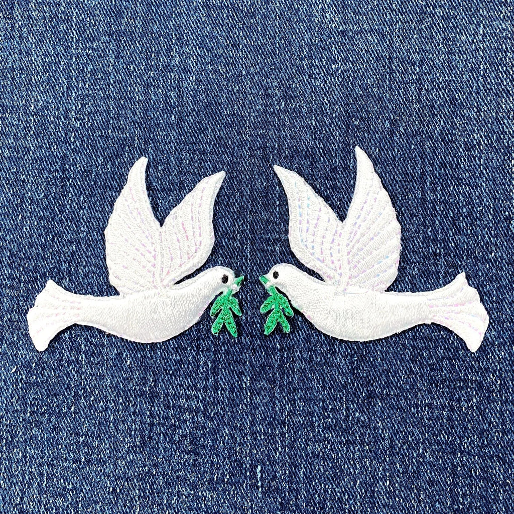 2-Pack Peace Dove Applique Patch Set - Embroidered Bird Badges 2-1/8" (Iron On)