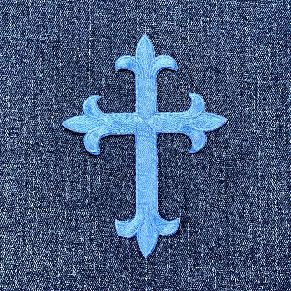 Large Sky Blue Cross Applique Patch - Embroidered Christ Jesus Badge 4" (Iron On)