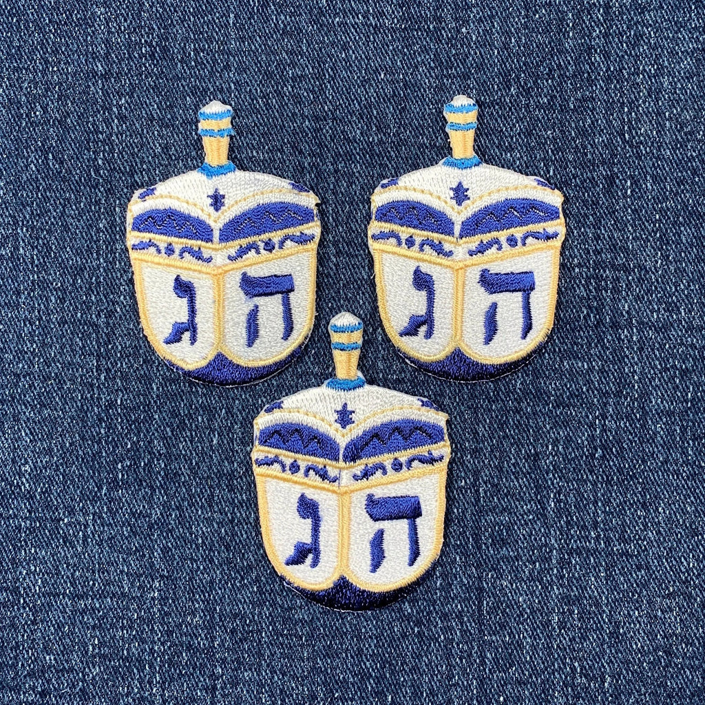 3-Pack Dreidel Applique Patch - Embroidered Hanukkah Badge 2.25" (Iron On)