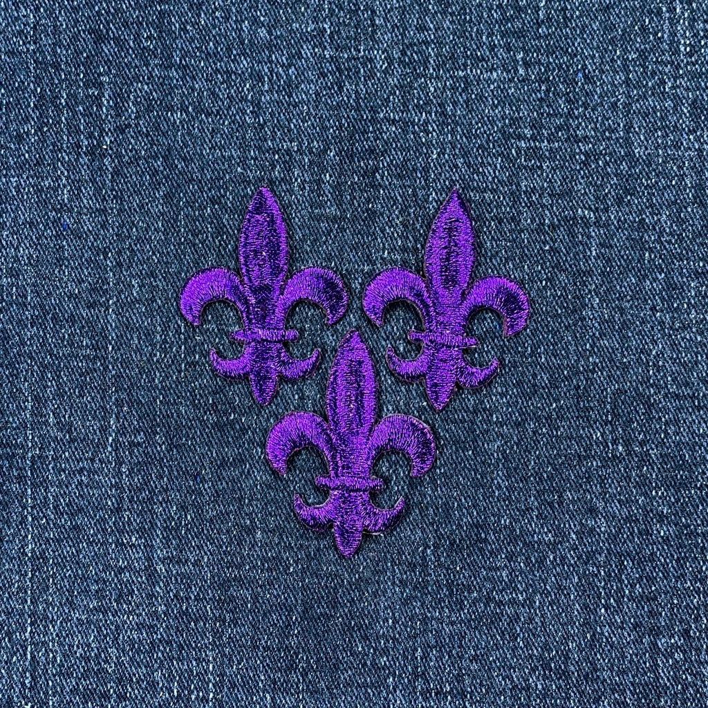 3-Pack Purple Fleur De Lis Applique Patch - Embroidered Decorative Badge 1.75" (Iron On)