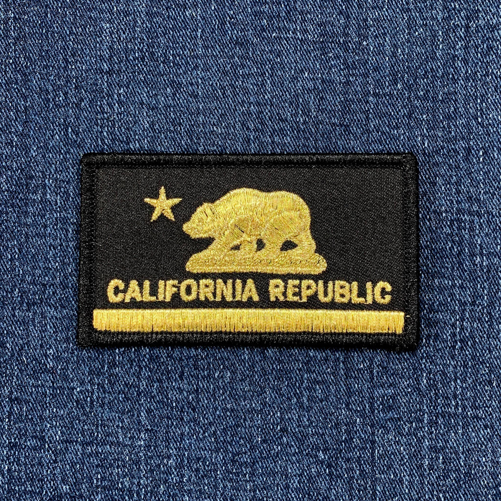 California Patch - Embroidered Metallic Gold & Black CA Flag Badge 3.25" (Iron On)