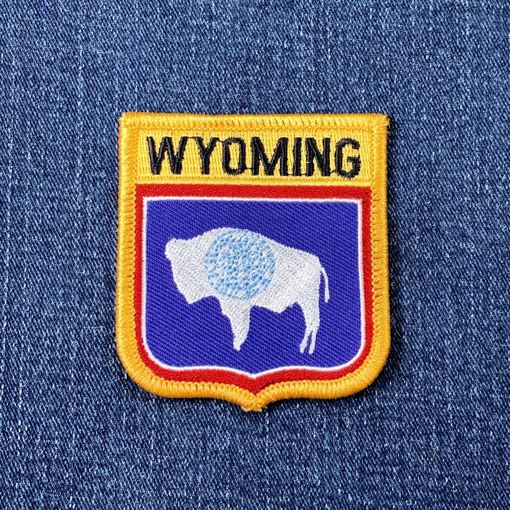 Wyoming Patch - Embroidered Buffalo Bison Flag Shield Badge 2.75" (Iron on)