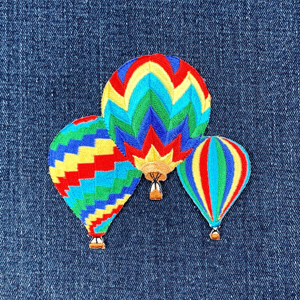 Three Hot Air Balloons Applique Patch - Colorful Embroidered Badge 3-3/8" (Iron On)