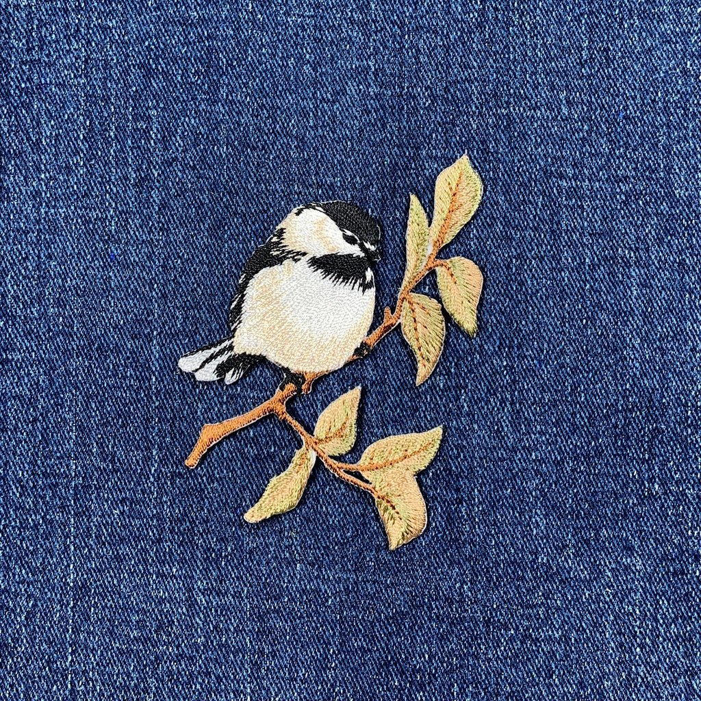 Chickadee Applique Patch - Embroidered Bird & Branch Badge 3.25" (Iron On)