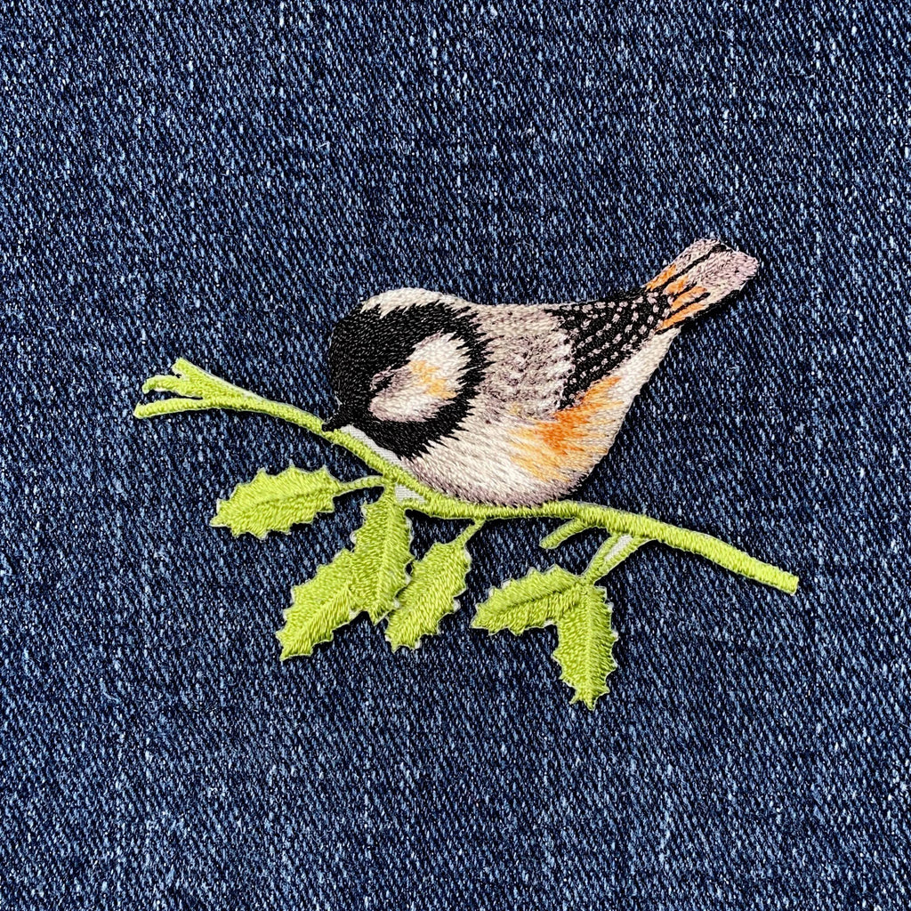 Chickadee Applique Patch - Embroidered Bird & Branch Badge 2-3/8" (Iron On)