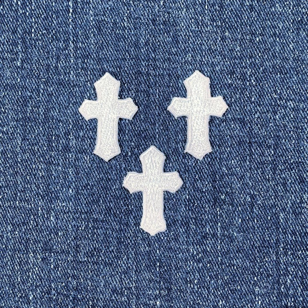 3-Pack White Cross Applique Patch - Embroidered Christian Badge 1.25" (Iron On)