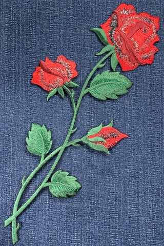 Extra Large Red Rose Applique Patch - Embroidered Flower Badge 10.5" (Iron On)